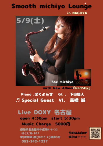 ♪8/15Thu 名古屋DOXY michiyo Smooth Sax sax michiyo P&Vo レイング知留辺